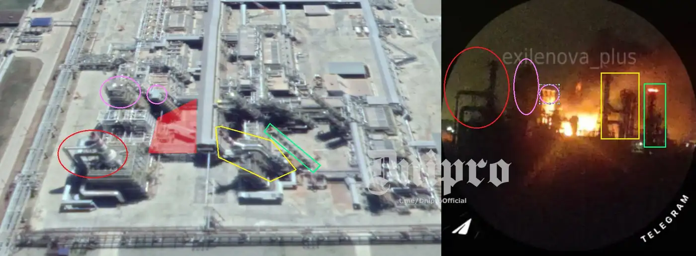 Только за последние пару месяцев — это третий удар. Вероятно повреждена система переработки мазута, которую не так давно модернизировали. Вновь российская ПВО ничего не может противопоставить дронам, а проблема с НПЗ только усугубляется.