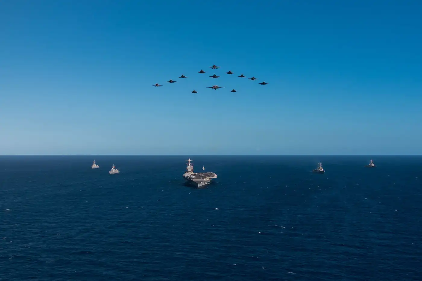 В подтверждение совместных действий 29 июля 2025 года в Адриатическом море прошёл воздушно-морской строй. Итальянские и американские самолёты пролетели над авианосцем USS Gerald R. Ford (CVN 78), который сопровождали корабли: итальянский тральщик ITS Rimini (M 5561), турецкий фрегат TCG Gelibolu (F-493), а также американские эсминцы класса Arleigh Burke — USS Bainbridge (DDG 96), USS Winston S. Churchill (DDG 81) и USS Mahan (DDG 72).