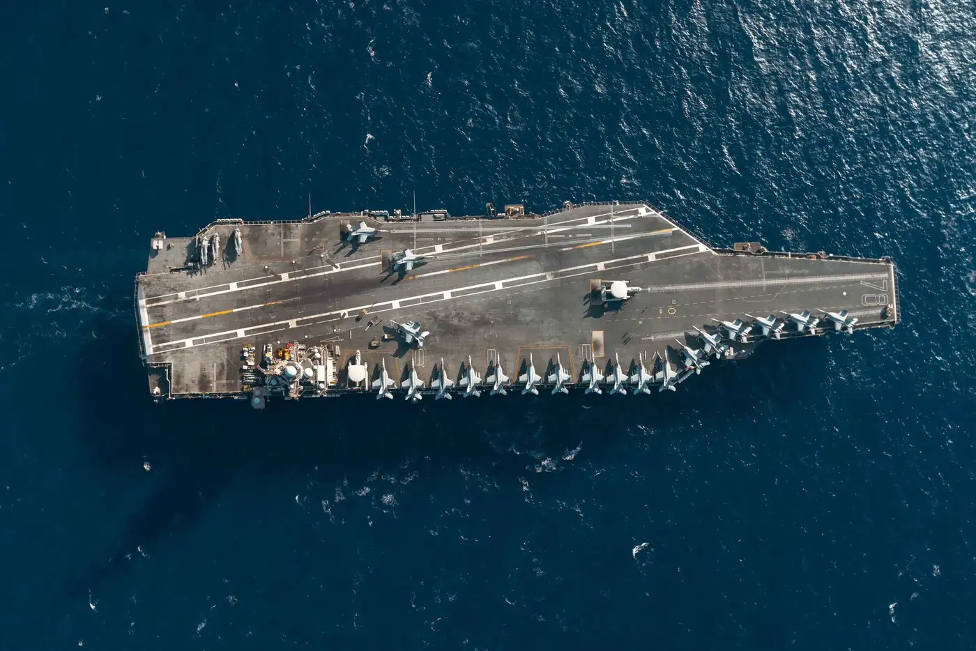 USS Gerald R. Ford, вместе с девятью эскадрильями авиакрыла Carrier Air Wing Eight, эсминцами Bainbridge, USS Mahan (DDG 72) и USS Winston S. Churchill (DDG 81) из состава эскадры эсминцев №2, вышел из Вирджинии в июне и прошёл Гибралтарский пролив 19 июля 2025 года.