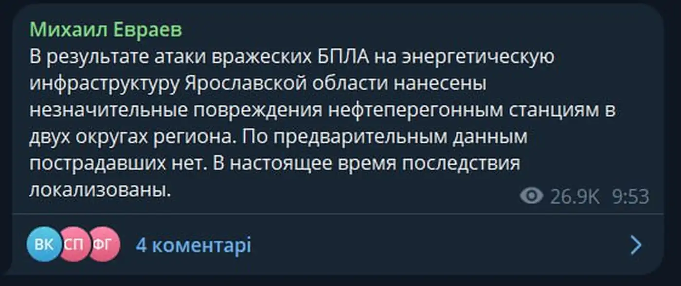 Помимо атак на объекты энергетики, также были атакованы 2 НПС в Ярославской области. Итого, 4 цели за ночь.