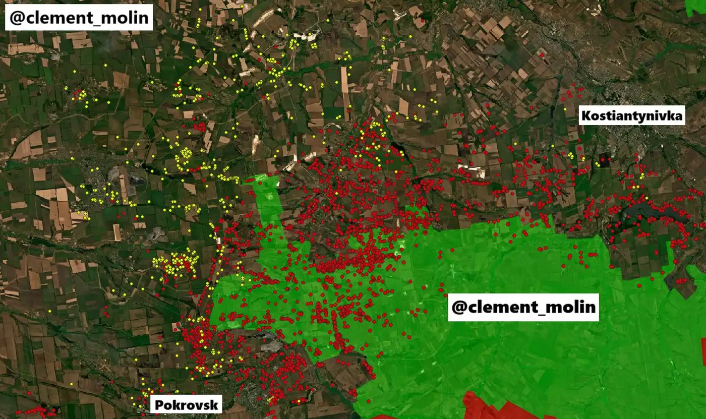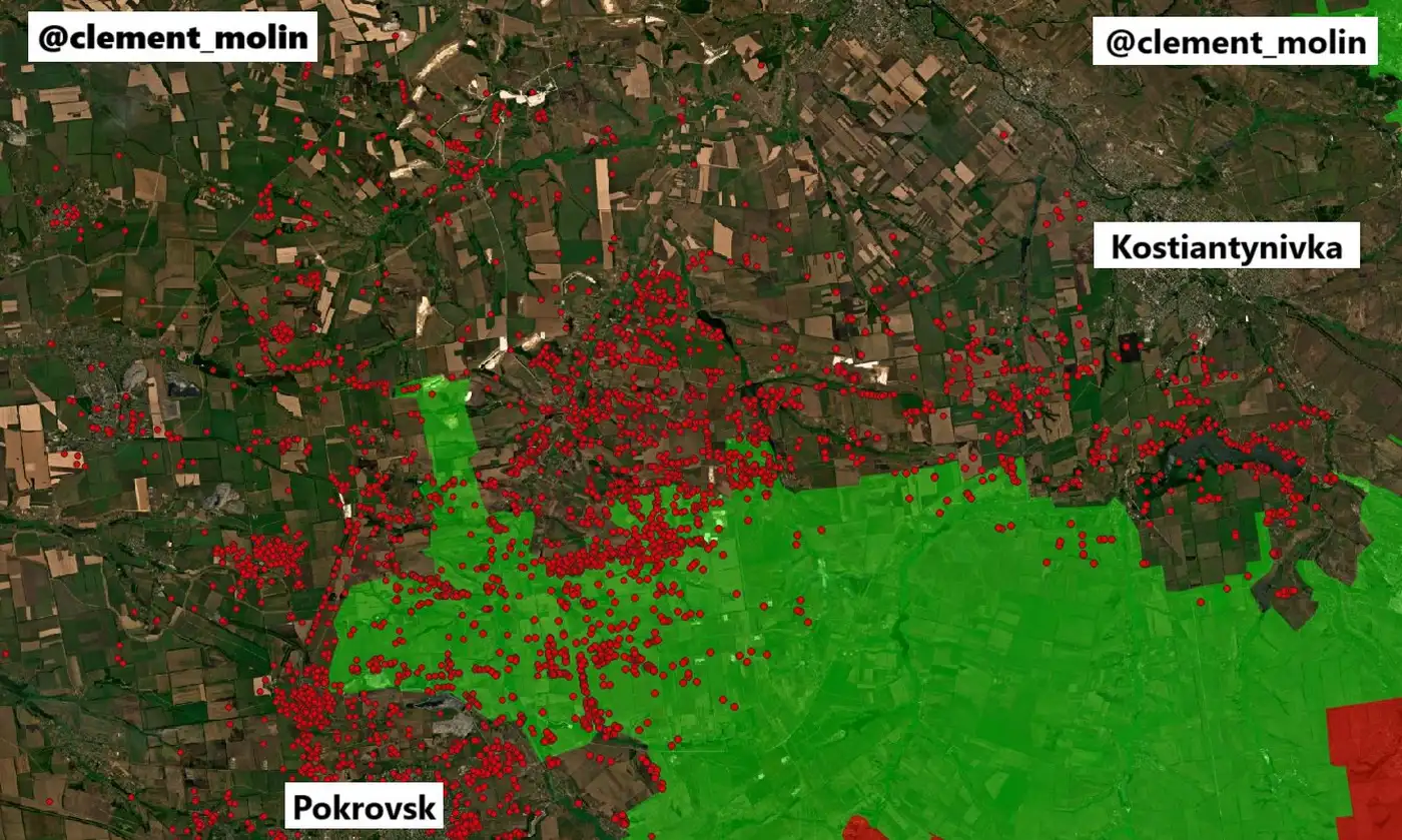- Россия продолжает массированно атаковать направление Покровск — Константиновка с около 350-400 авиаударами в неделю.
