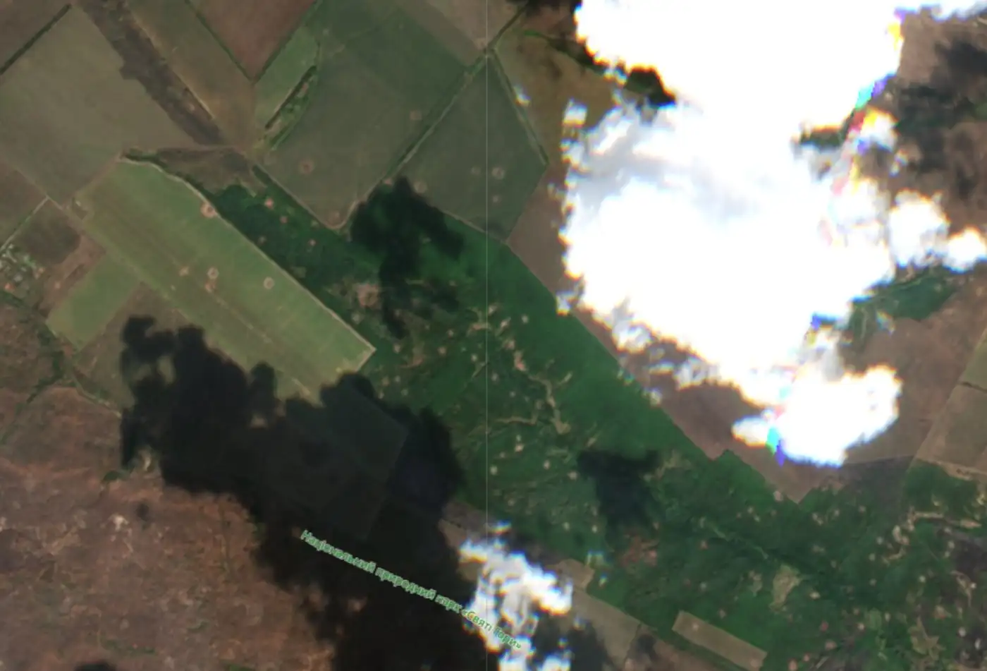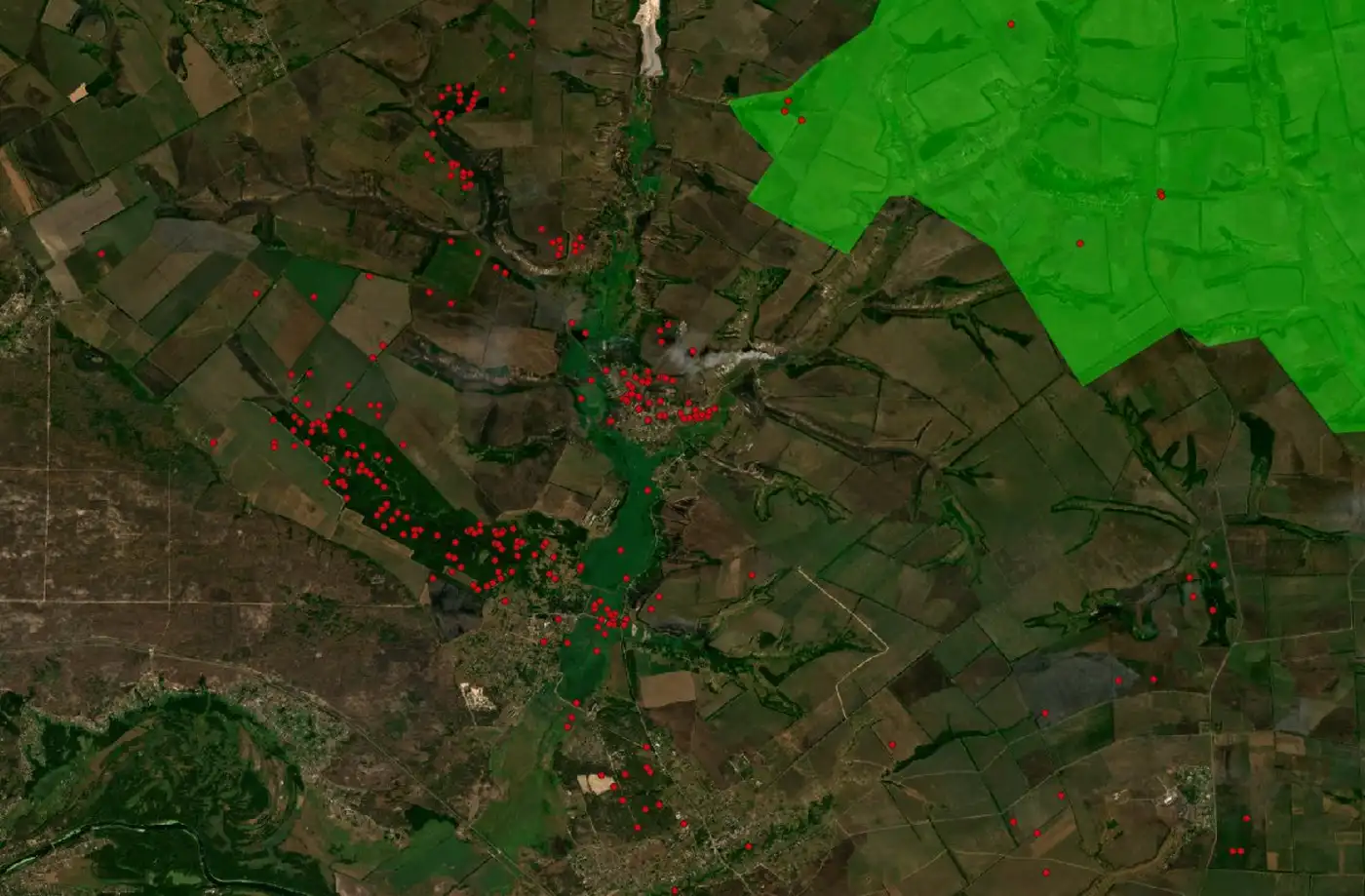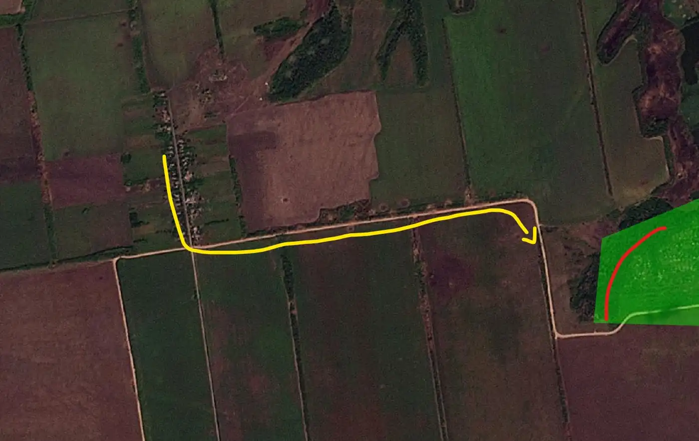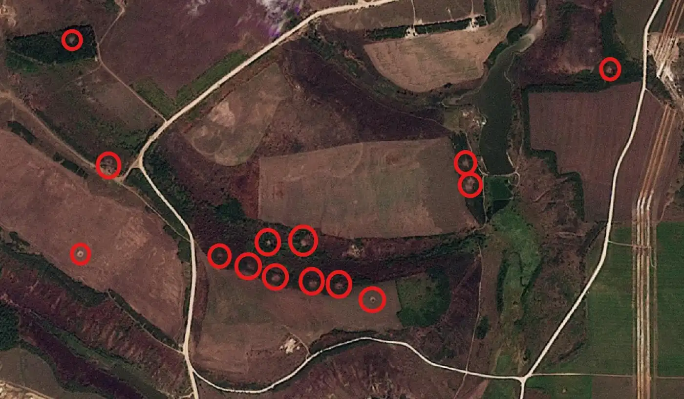 Вблизи Нового Шахового видно, как Россия бомбила лесополосу (около 15 ударов), где украинские силы пытались продвигаться во время контрнаступления.