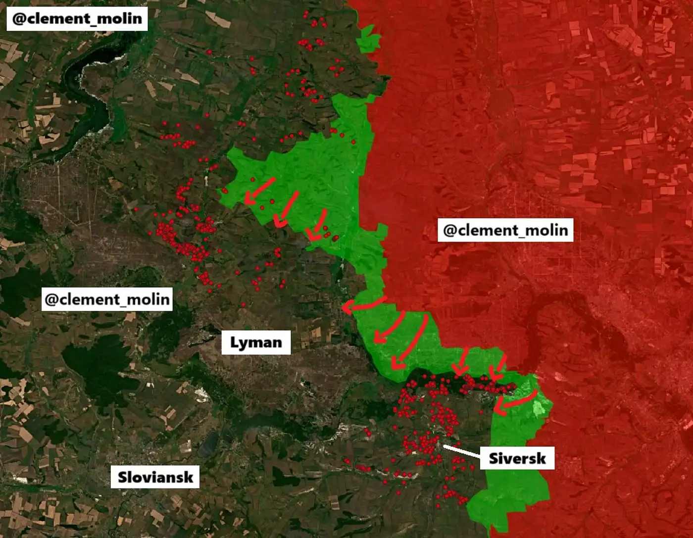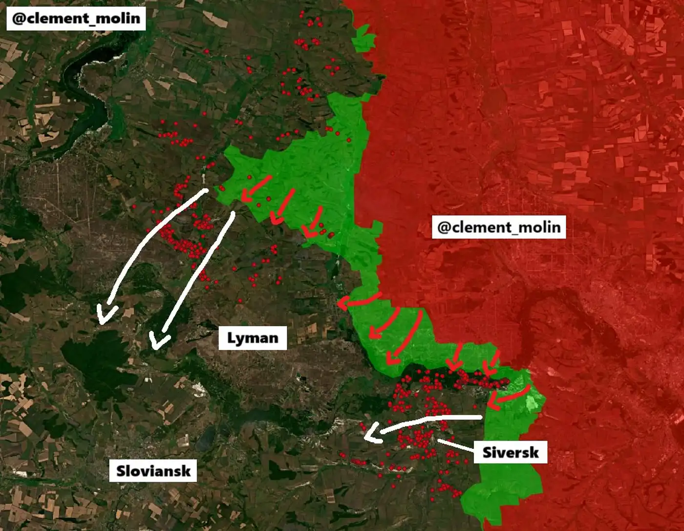 Россия давит к северу от Лимана и пытается: отрезать город и обойти Славянск.