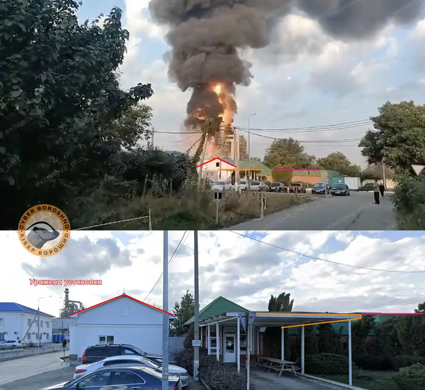По геолокации (44.883926, 38.826957) и архитектурным признакам подтверждено: на фото и видео горит именно та самая установка — ключевой элемент переработки топлива. Камеры местных жителей сняли момент удара, пламя взметнулось на десятки метров. Но в официальных сообщениях — тишина, как будто ничего не случилось. А ведь для логистики армии этот НПЗ — жизненно важный элемент.