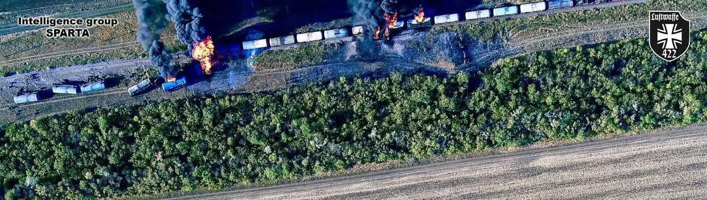 19.08.2025, около 06:30, был нанесен удар БПЛА по железнодорожному эшелону с топливом в районе н.п. Остриковка, Запорожская область. Беспилотники уже легко долетают до путей и накрывают логистику.