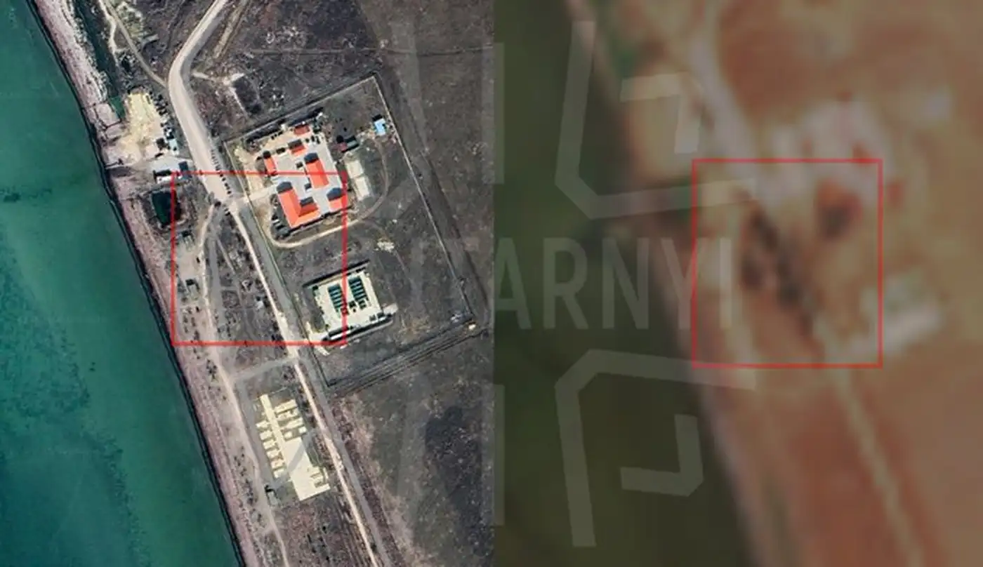 Супутниковые снимки Copernicus подтверждают поражение об’єкта — главное здание уничтожена, а вокруг фиксируются следы пожара.