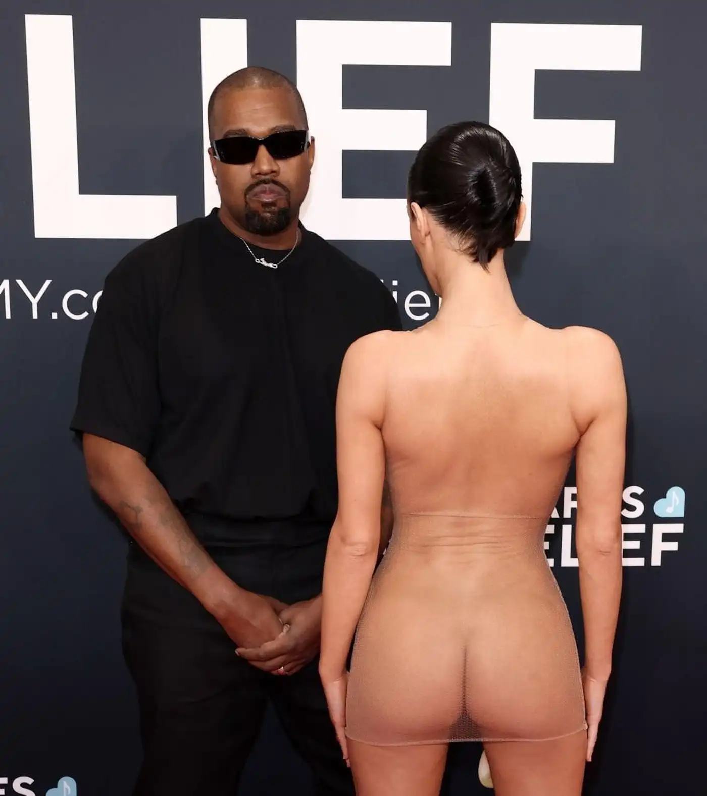Жена рэпера Канье Уэста Бьянка Цензори пришла на церемонию «Грэмми» в полностью прозрачном платье.