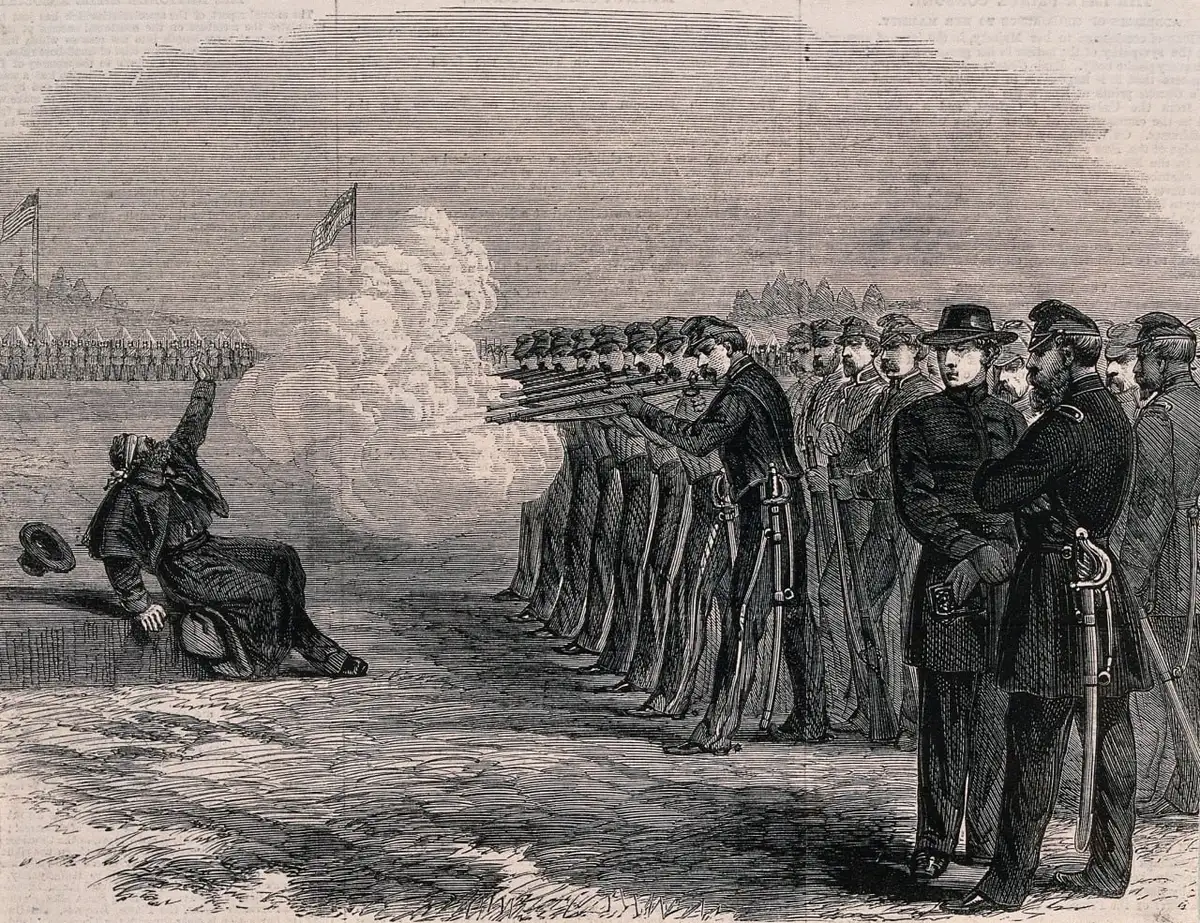 Иллюстрация: гравюра, изображающая расстрел дезертира перед строем во время Гражданской войны в США (или Войны между государствами, смотря с чьей перспективы вы на тот конфликт смотрите).