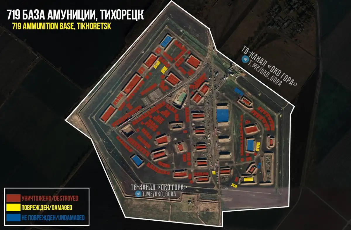 Особенно впечатляет, как ударами удалось уничтожить около 96% 719-й базы амуниции у Тихорецка.