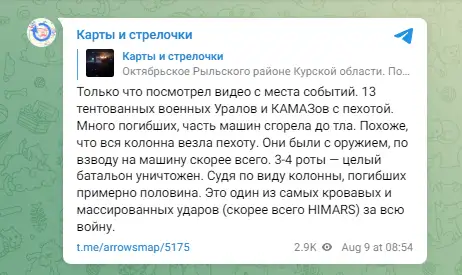 На скрине выше то, что враг пишет об уничтожении колонны ЛНР в Курской области.