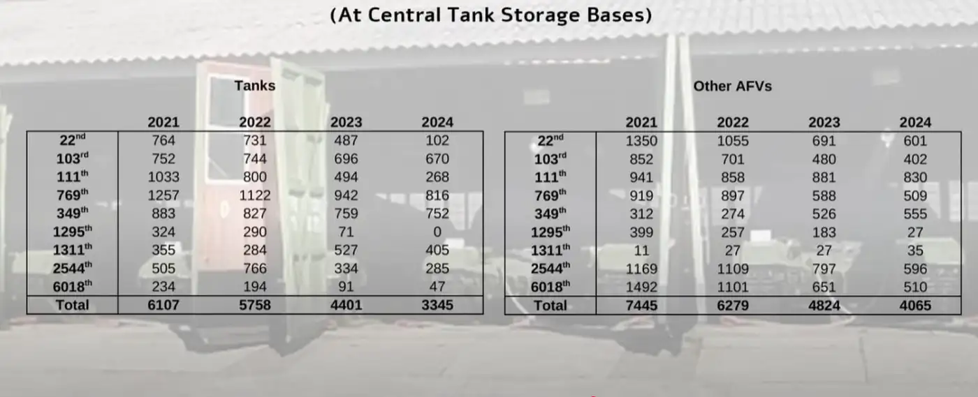 Исследователи отмечали примерно 50%-ный скачок поступающей на ремонт бронетехники в 2023 году по сравнению с предыдущим периодом. Ту же динамику можно заметить и по числу списанных/выведенных из строя танков — если в 2022 году потери насчитывали порядка 400 машин, то к 2023 году эта цифра увеличилась уже на 1300 и более.