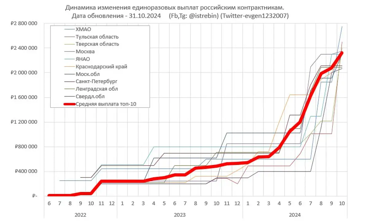 Рост разовых выплат за заключение контракта с МО РГ. Циферки от Евгения Истребина.