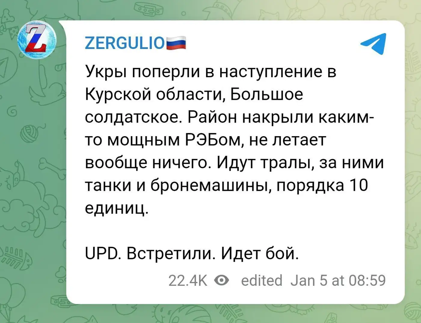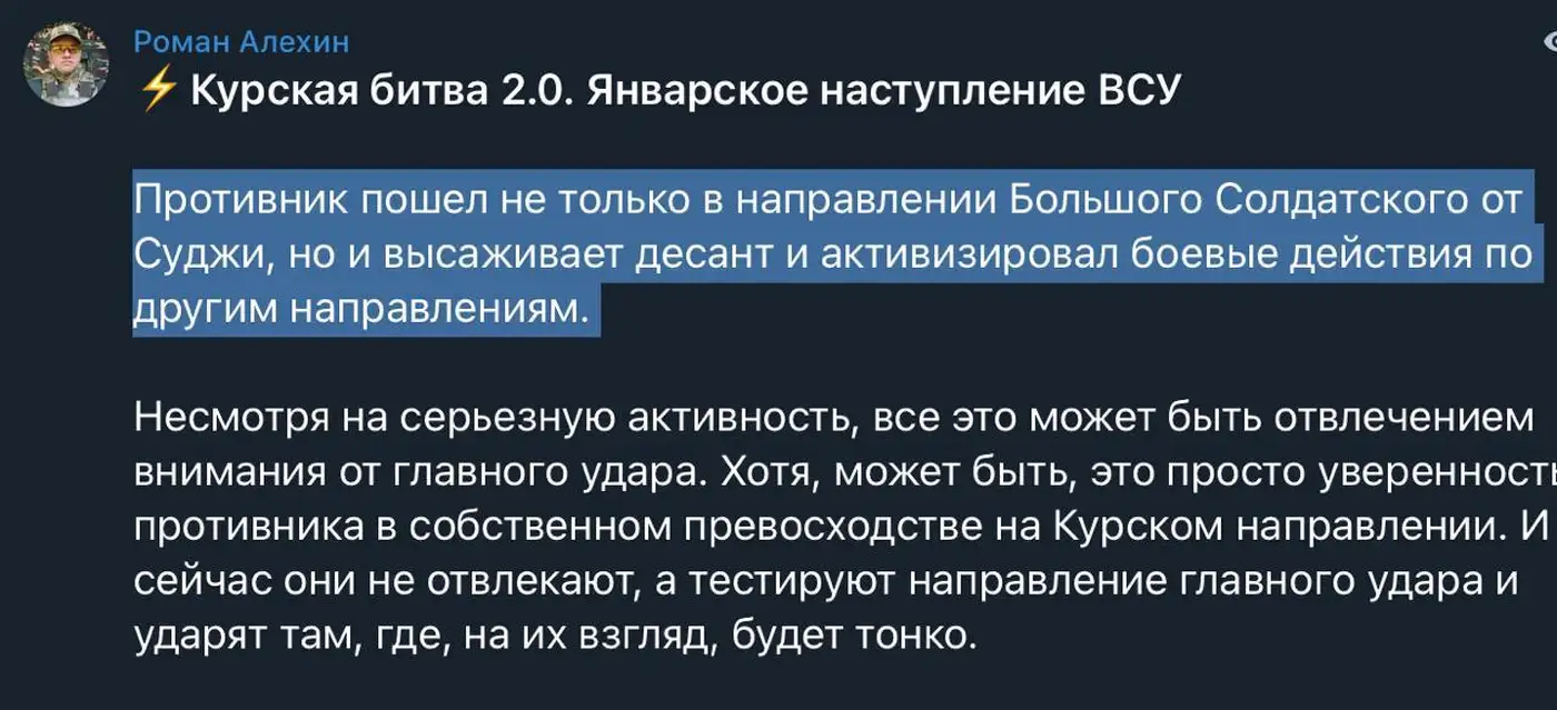 Как бы то ни было, ситуация развивается стремительно, и любые поспешные оценки могут не подтвердиться. Осталось лишь дождаться объективного контроля и официальной информации, чтобы понять истинные масштабы и значение январского «контрнаступления» на Курщине.