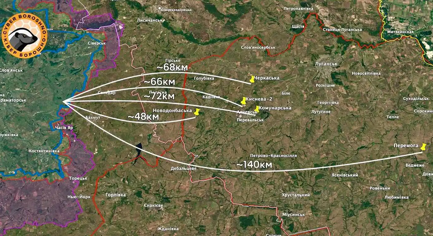 Геолокация прилетов по подстанциям — пять штук в оккупированной части Луганской области.