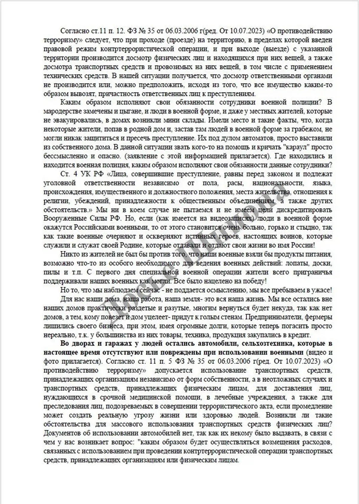 Местные жители надеются, что их обращение будет услышано, и призывают к действиям против тех, кто должен был защищать их, а не грабить.