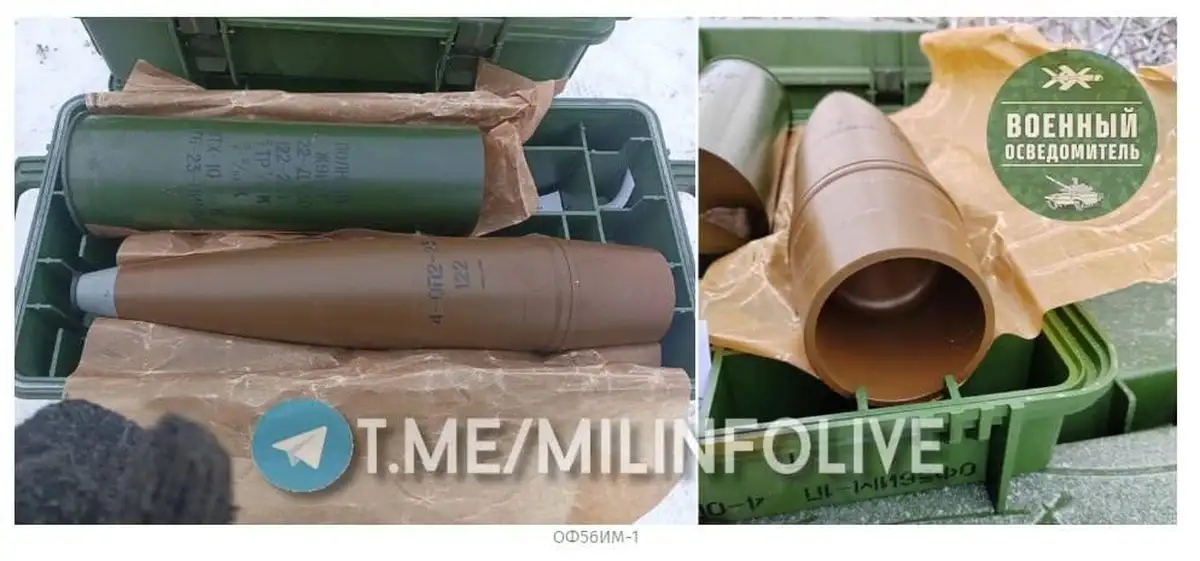 Канал «Военный Осведомитель» откровенно намекает на то, что российский ВПК не способен производить современные снаряды калибра 122-мм. Купили у Китая — либо снаряды, либо целые производственные линии, ибо даже снарядные ящики — копия китайских.