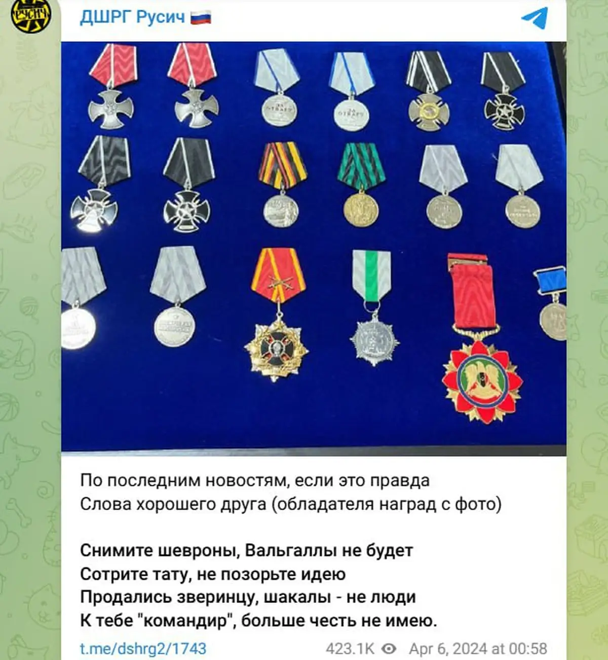 Реакции «Русича» на переход бывших вагнеров на службу в «Ахмат». Менее года назад.