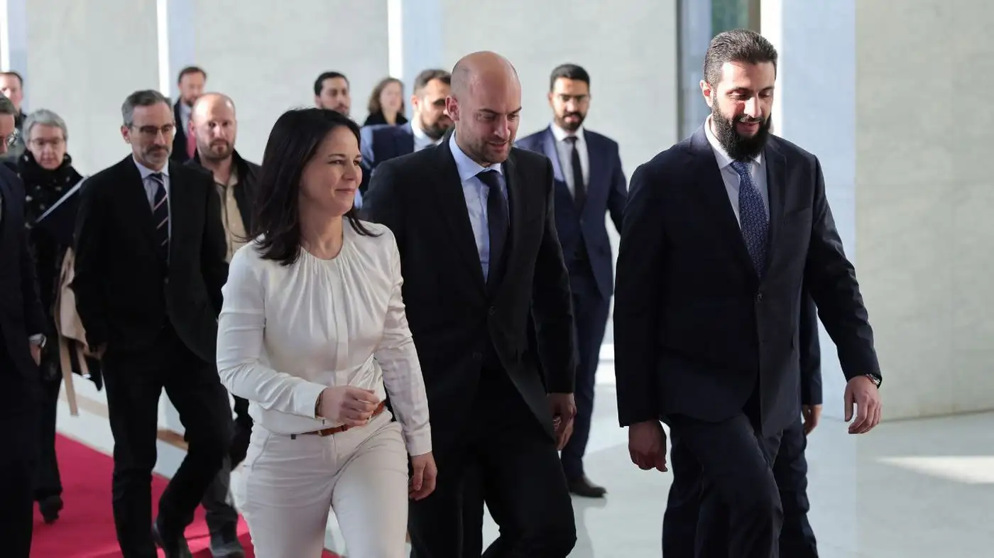 Фактический лидер Дамаска Ахмед аш-Шараа на сегодняшней встрече с министрами иностранных дел Германии и Франции.