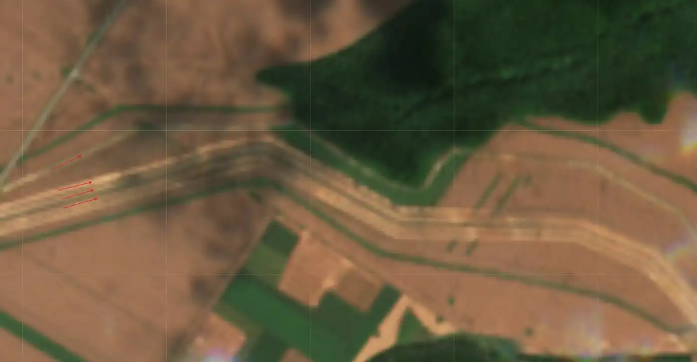 Клеман Молен проанализировал спутниковые снимки Sentinel-2, сделанные сегодня, чтобы показать, как выглядит новая оборонная линия — так называемая «Новая линия Донбасса», часть которой тянется от Харькова до Покровска.