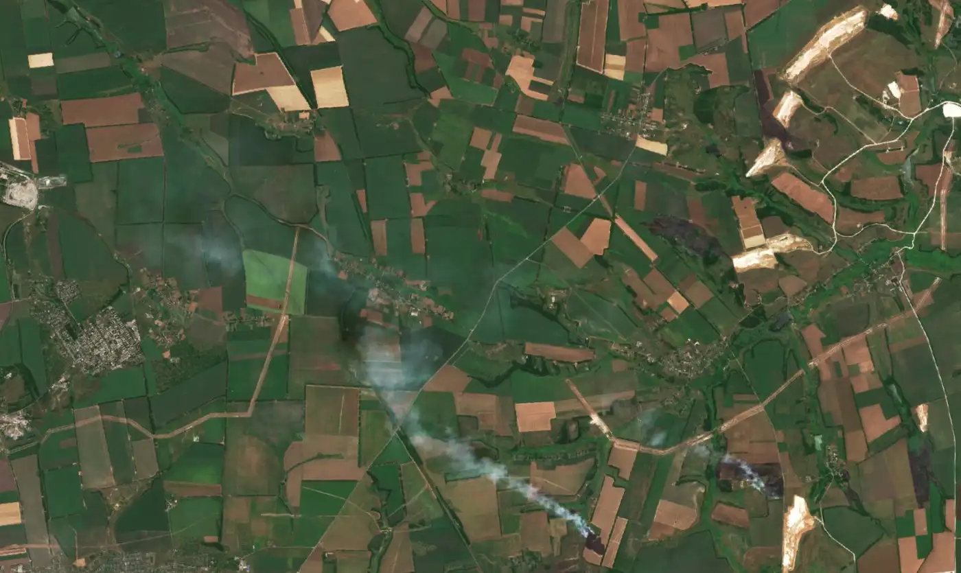 ✅ Общий снимок к западу от Покровска: десятки рвов, ведущих в сторону Днепропетровской области. Здесь заметно много дыма — признак активных боевых действий, где российская армия давит к границам области.