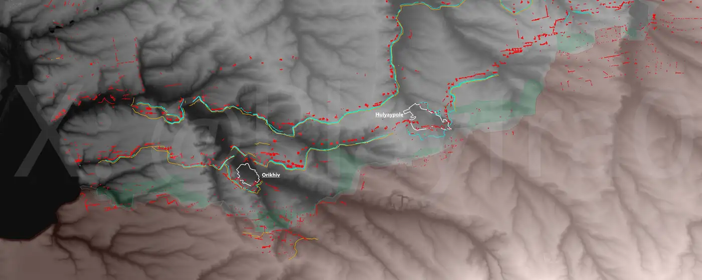 Главная опора обороны в этом секторе — два ключевых пункта: Орехов и Гуляйполе. Украинские силы давно ведут земляные работы как перед линией соприкосновения, так и в глубине тыла. В итоге здесь сформировались две полноценные линии обороны.