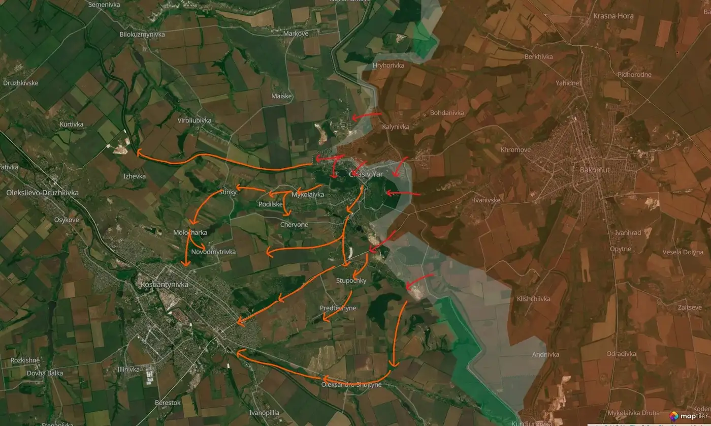 В Часовом Яре российские войска взяли под контроль большую часть цехов огнеупорного завода, включая цех №4 в районе «Северный». Под украинским контролем пока остаётся цех №5, но он оспаривается. Высотные жилые дома здесь играют ключевую роль в обороне.