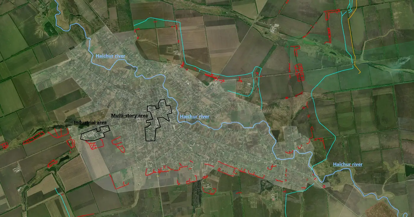 Гуляйполе, как и Орехов, разделено рекой (Гайчур), в черте города тоже есть промзоны и районы многоэтажек. Но настоящая оборонительная линия находится примерно в четырёх километрах позади этих полевых укреплений.
