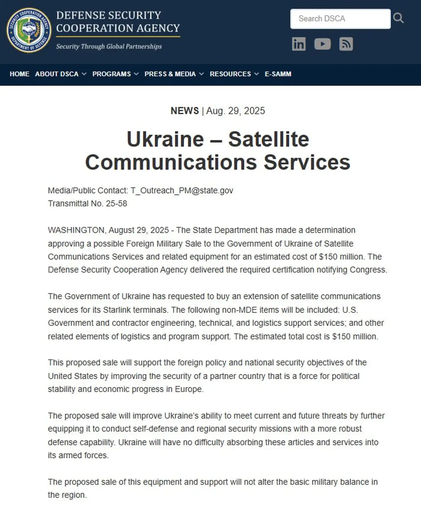 Отдельная продажа на сумму 150 миллионов долларов обеспечит расширение услуг спутниковой связи для украинских терминалов Starlink.
