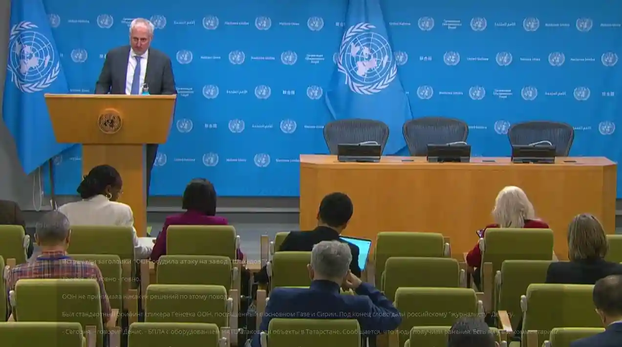 Был стандартный брифинг спикера Генсека ООН, посвященный в основном Газе и Сирии. Под конец слово дали российскому «журналисту» Денису.
