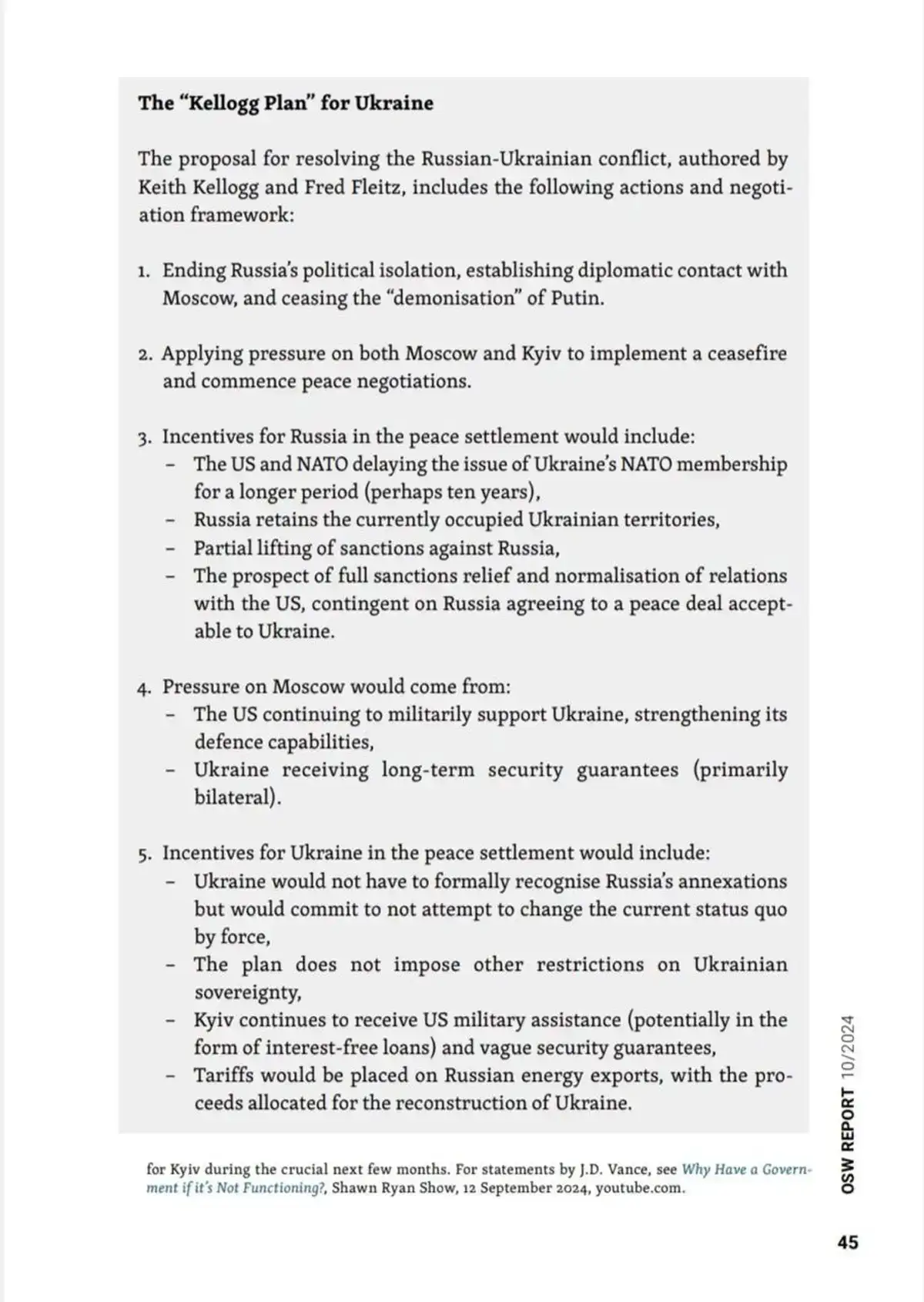 Документ был разработан в апреле 2024 года, но стал актуален после назначения Трампом Келлога спецпосланником США по Украине. План включает следующие ключевые положения: