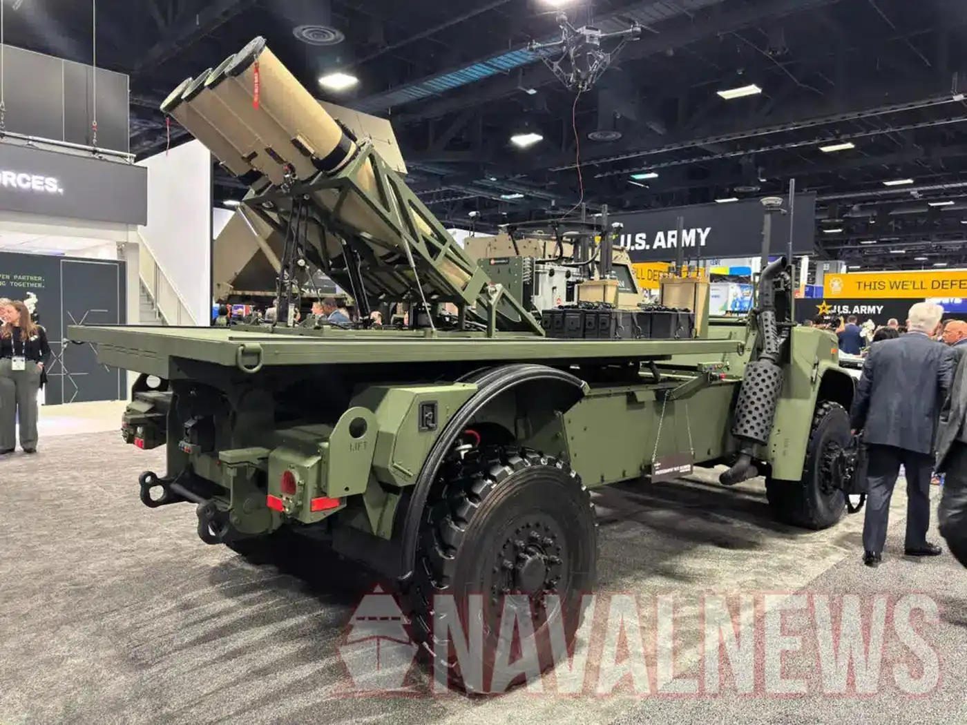 Самая маленькая машина семейства FMAV, представленная на выставке, — это Light Multi-Mission Autonomous Vehicle (L-MAV). Демонстрируемая L-MAV оснащена дронами Switchblade 600 и системами противодействия беспилотникам BlueHalo Titan C-UAS, однако компания Oshkosh заявляет, что платформа легко может переключаться между задачами автономной логистики последней мили, специализированной борьбы с беспилотниками и другими необходимыми миссиями.