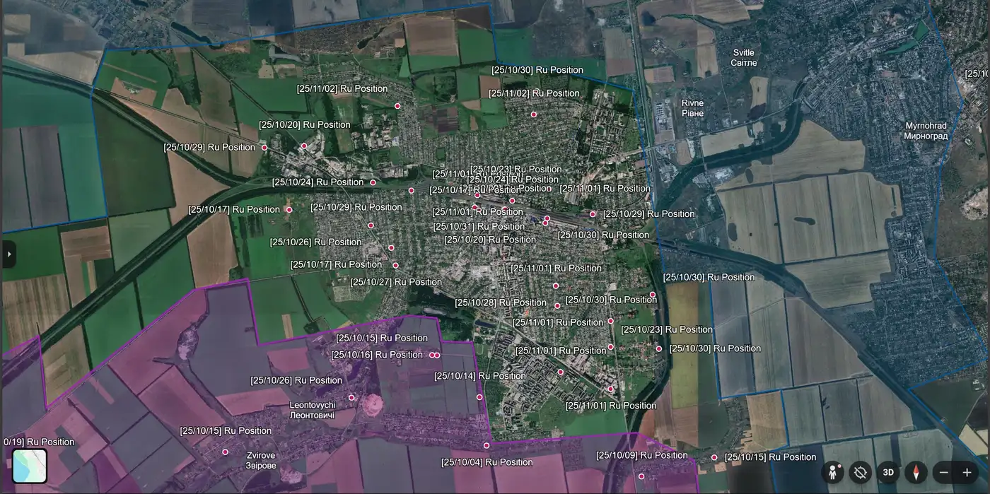 Места, где зафиксированы поражения пехоты россиян в Покровске. Похоже, что пехотные группы противника инфильтрировались почти в каждый район города. Это не речь о контроле, но это еще одно напоминание, что линии фронта как таковой не существует. Фронт стал чисто диффузным.
