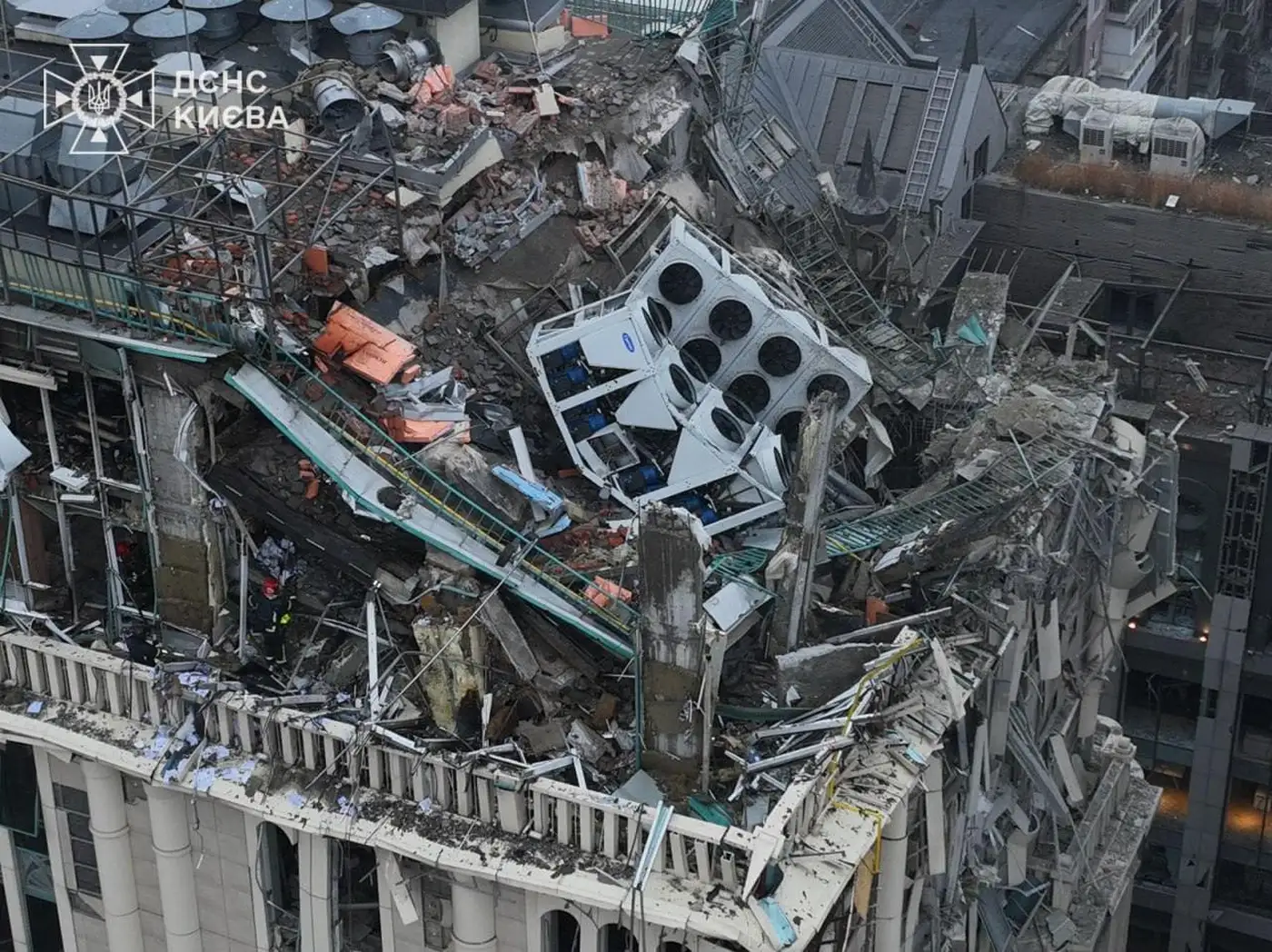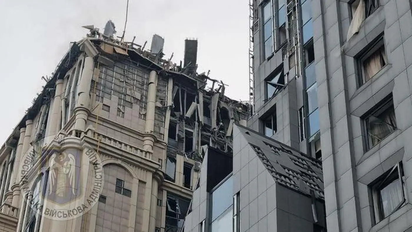 Последствия обстрела центральных районов Киева российскими баллистическими ракетами