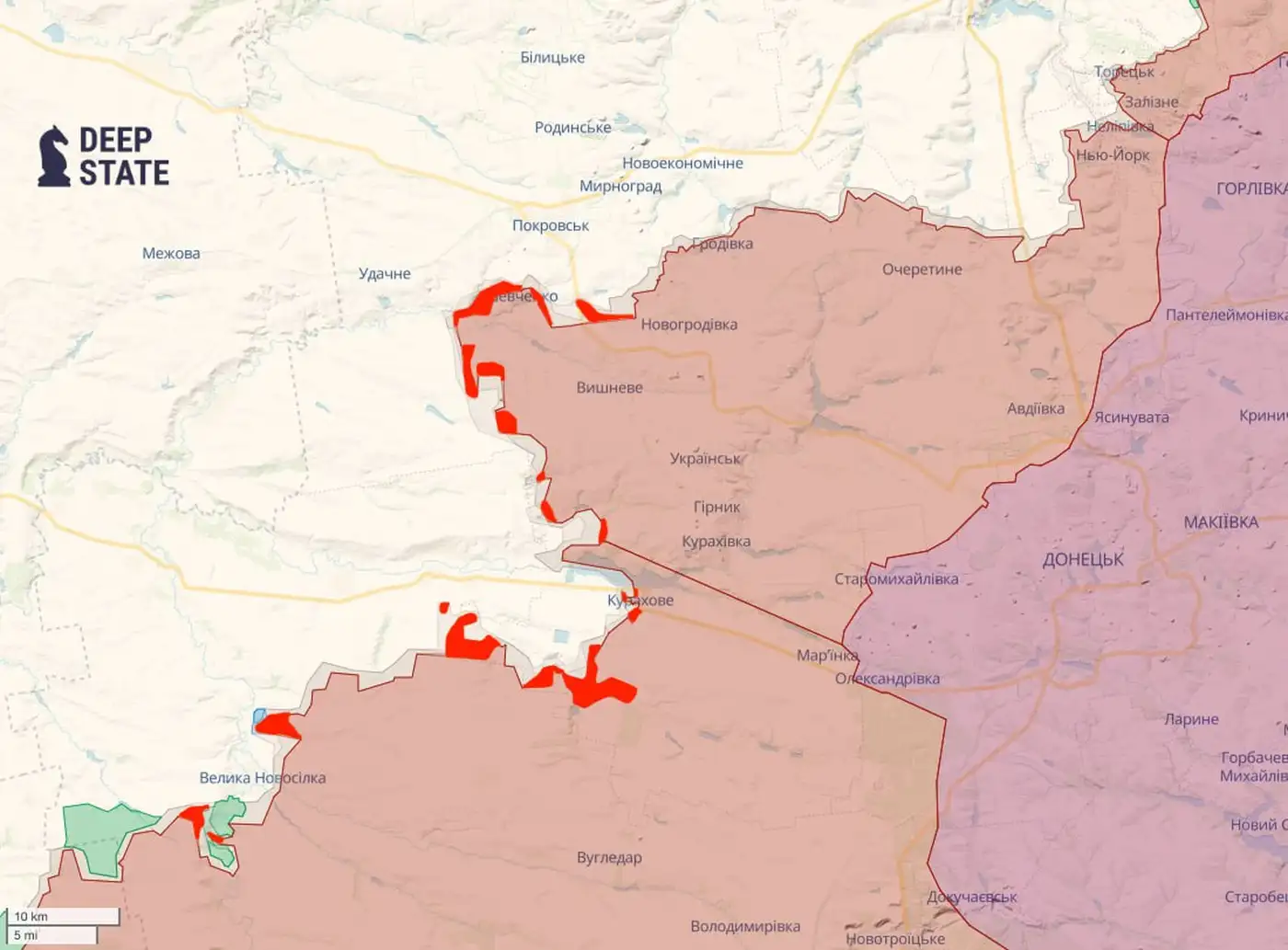 - С 14 по 21 ноября российские оккупанты захватили 153 км² территории (≈19 км² в сутки), продолжая наступление на Покровском и Кураховском направлениях.
