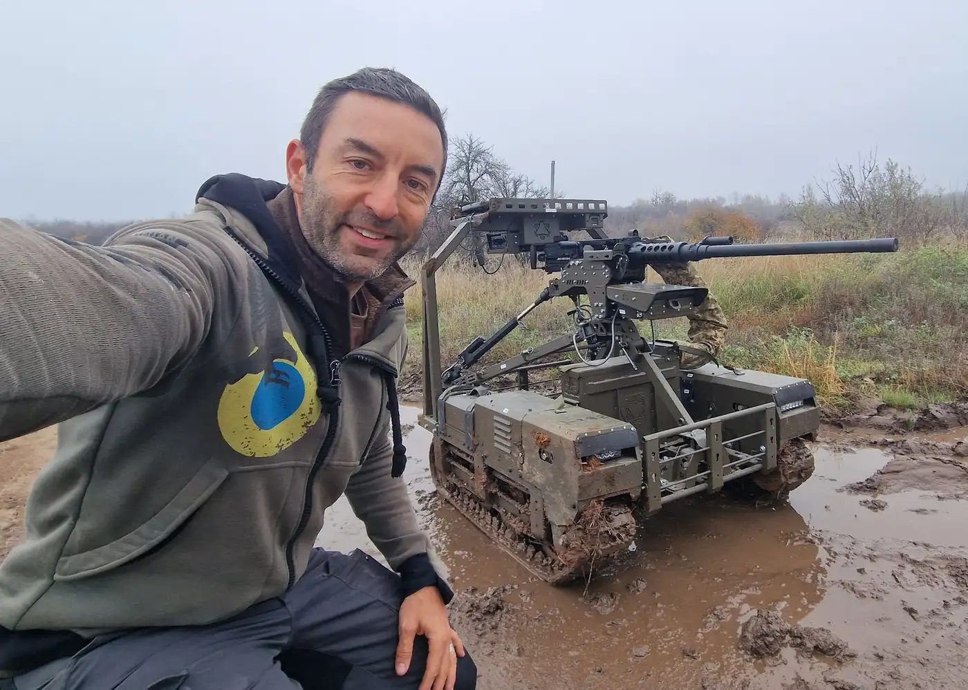 Xavier Tytelman рядом с наземным роботом NUMO (боевая версия Droid TW-12.7) с пулеметом M2 Browning