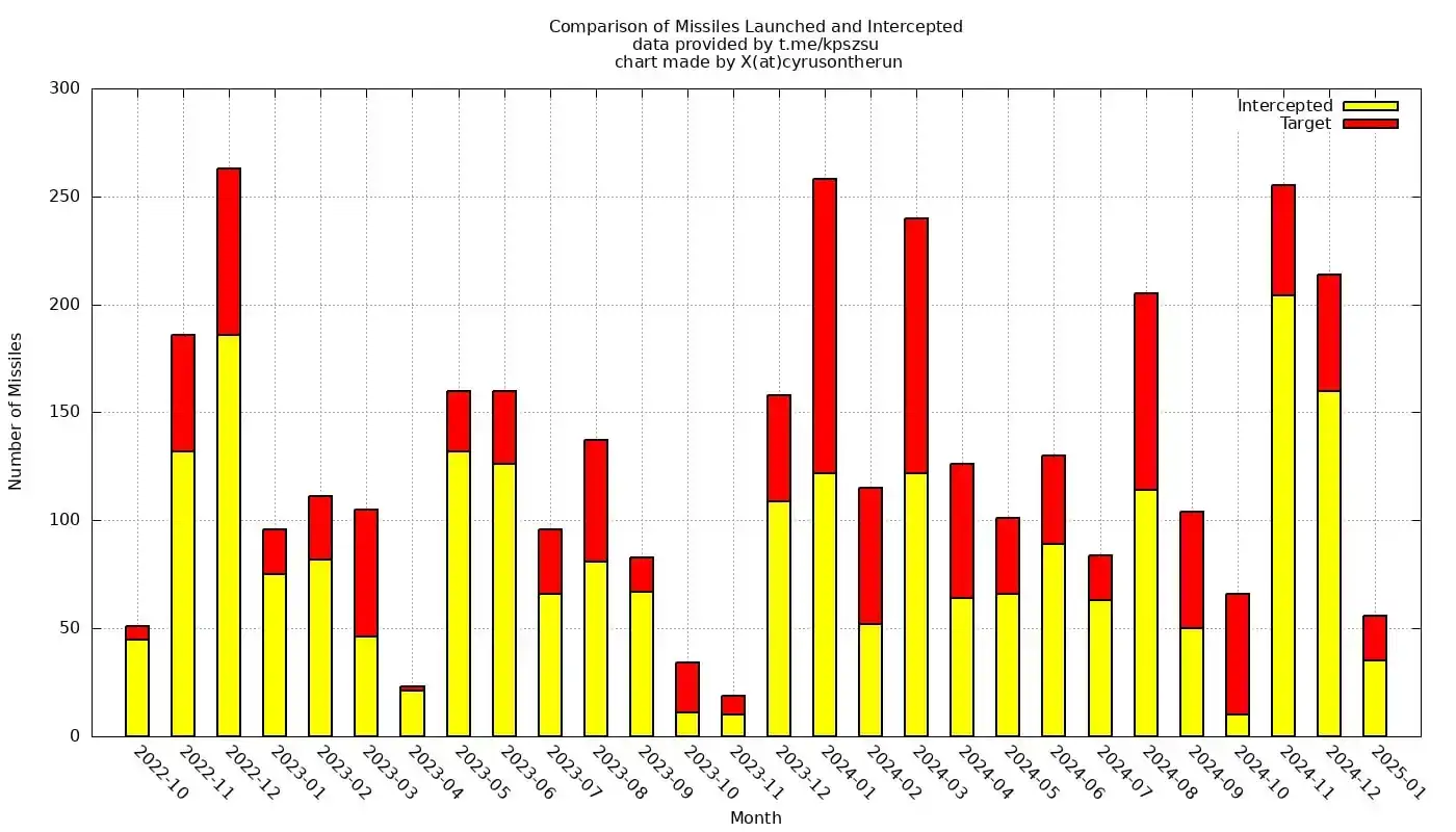 Cyrusontherun публикует график российских ракетных атак (без учета дронов) по нам.