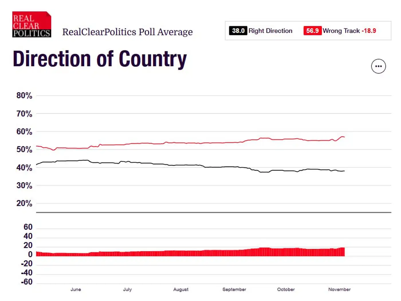 Привожу их показатели по трём ключевым метрикам (как всегда, берём Real Clear Politics — те, кто вопреки многим предсказал победу Трампа в 2024).