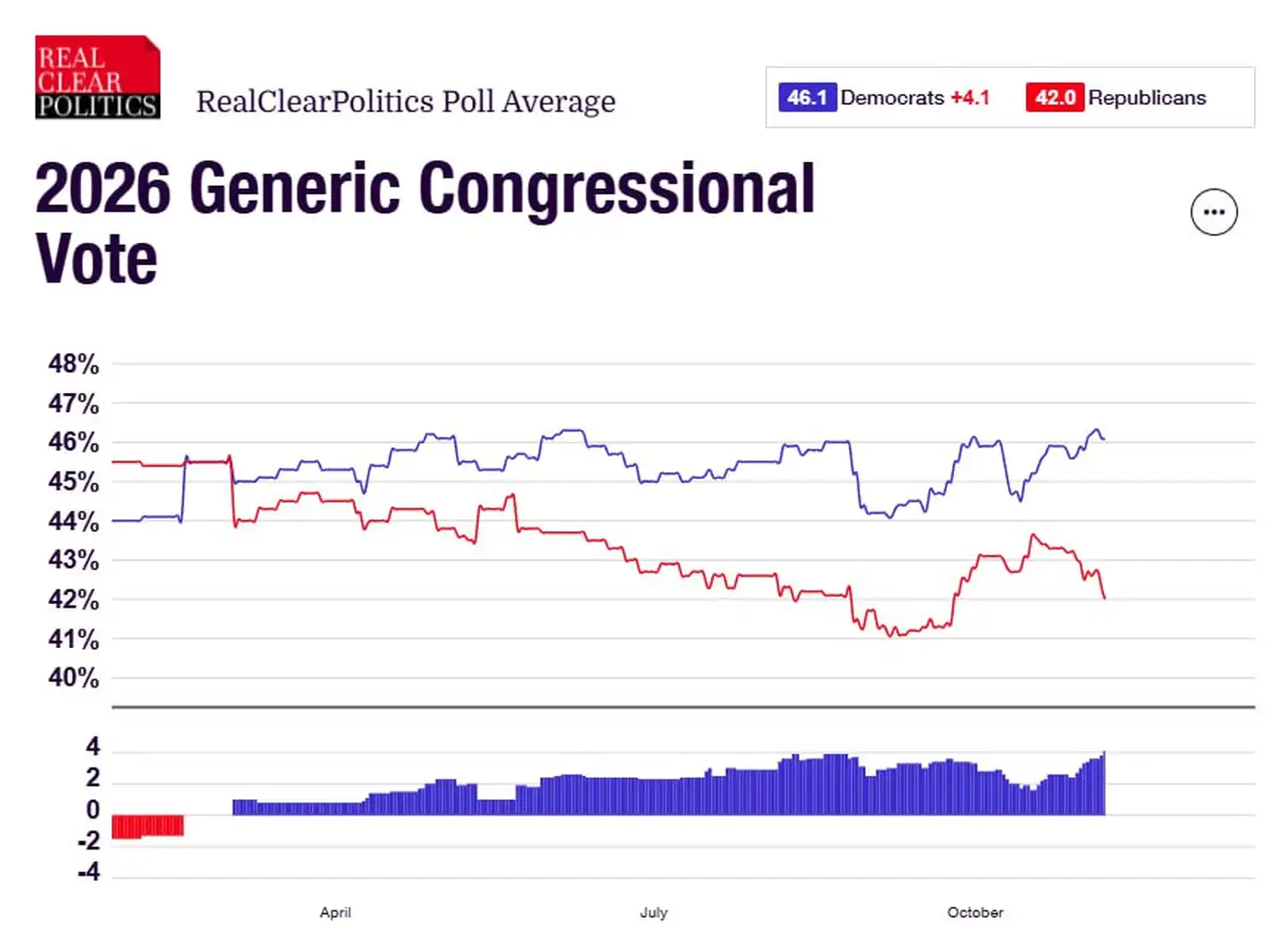 7 ноября: демократы, +4,1% (самое большое преимущество демов за весь второй срок Трампа).