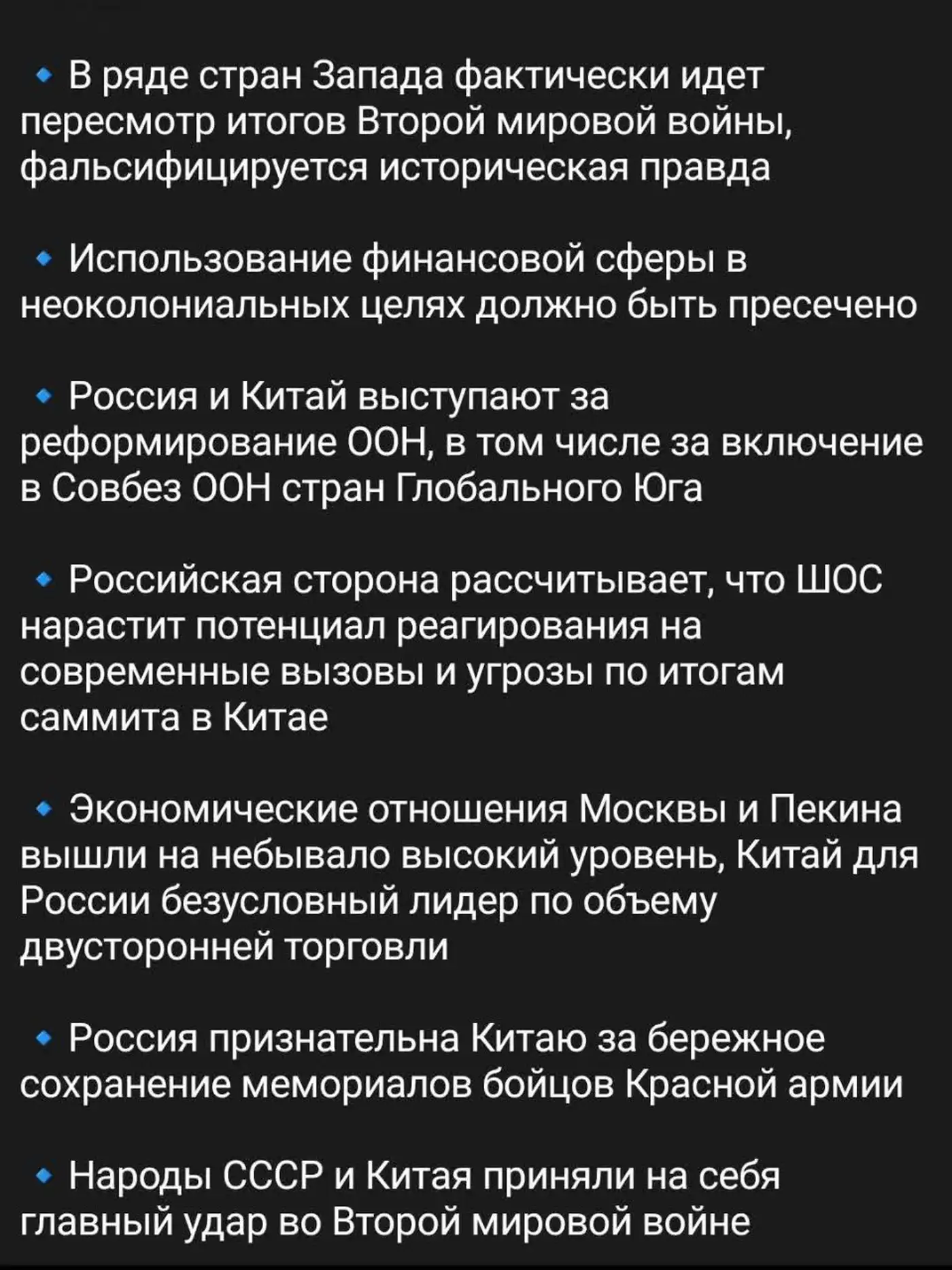 Кроме этого, Путин будет присутствовать в качестве главного гостя на торжественных мероприятиях в Пекине, приуроченных к 80-й годовщине победы над милитаристской Японией и окончания Второй мировой войны. 3 сентября на площади Тяньаньмэнь пройдет грандиозный военный парад.