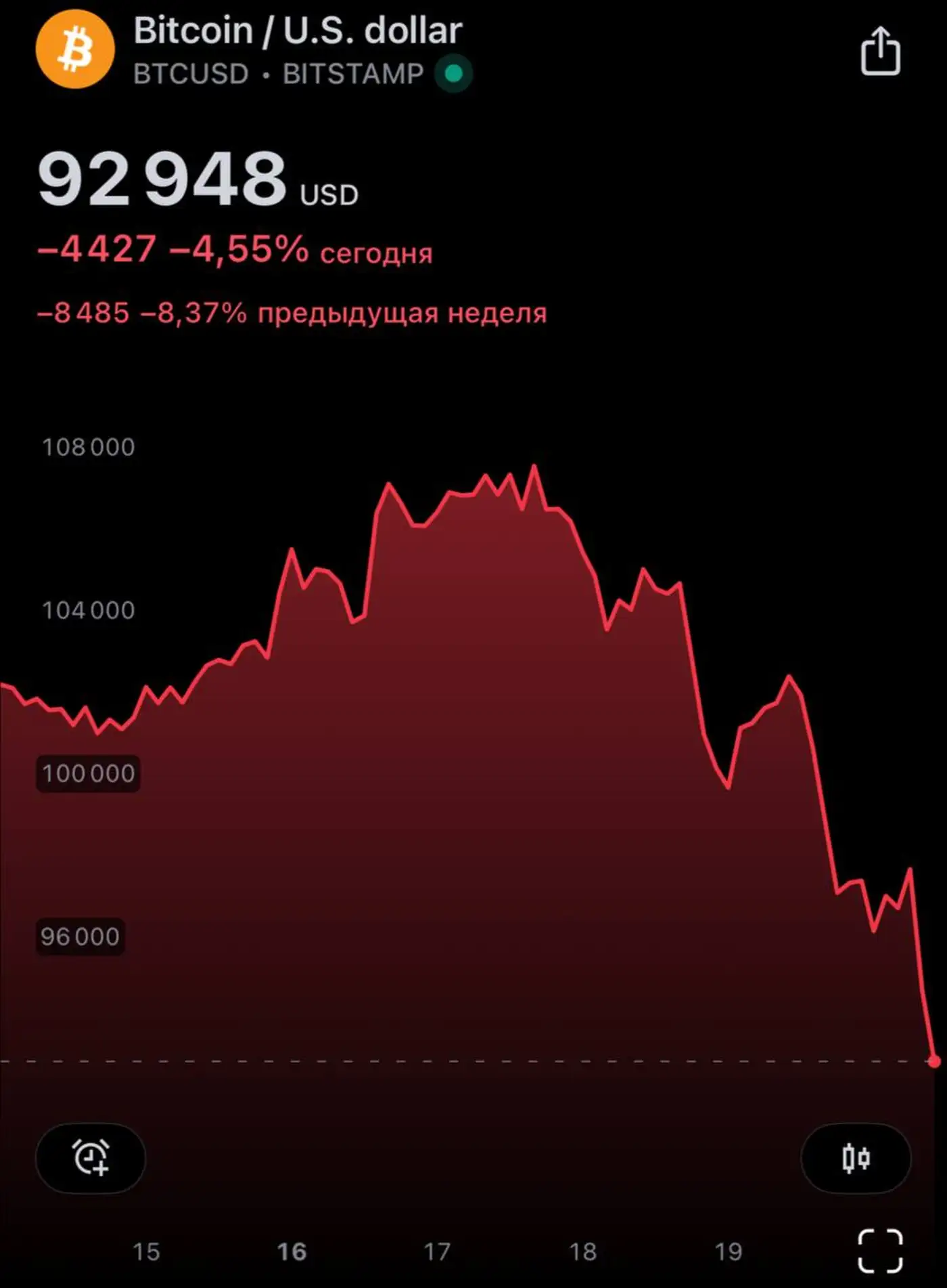 В декабре биткоин успел подняться выше $108 000 на фоне позитивных новостей, но вскоре резко рухнул ниже $93 000. Причиной стало заявление ФРС США о замедлении темпов снижения процентных ставок.