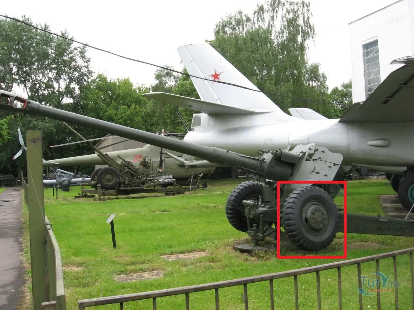 Отличия в деталях, на первый взгляд не бросающихся в глаза, но всё же. Самое яркое – колёса. Для наглядности, привожу на фото №3 советскую Д-74 с отчётливо другой формой колеса и рифлением шин.