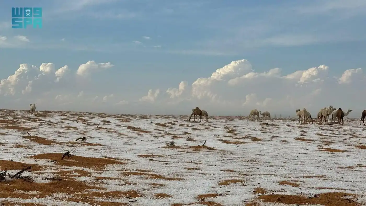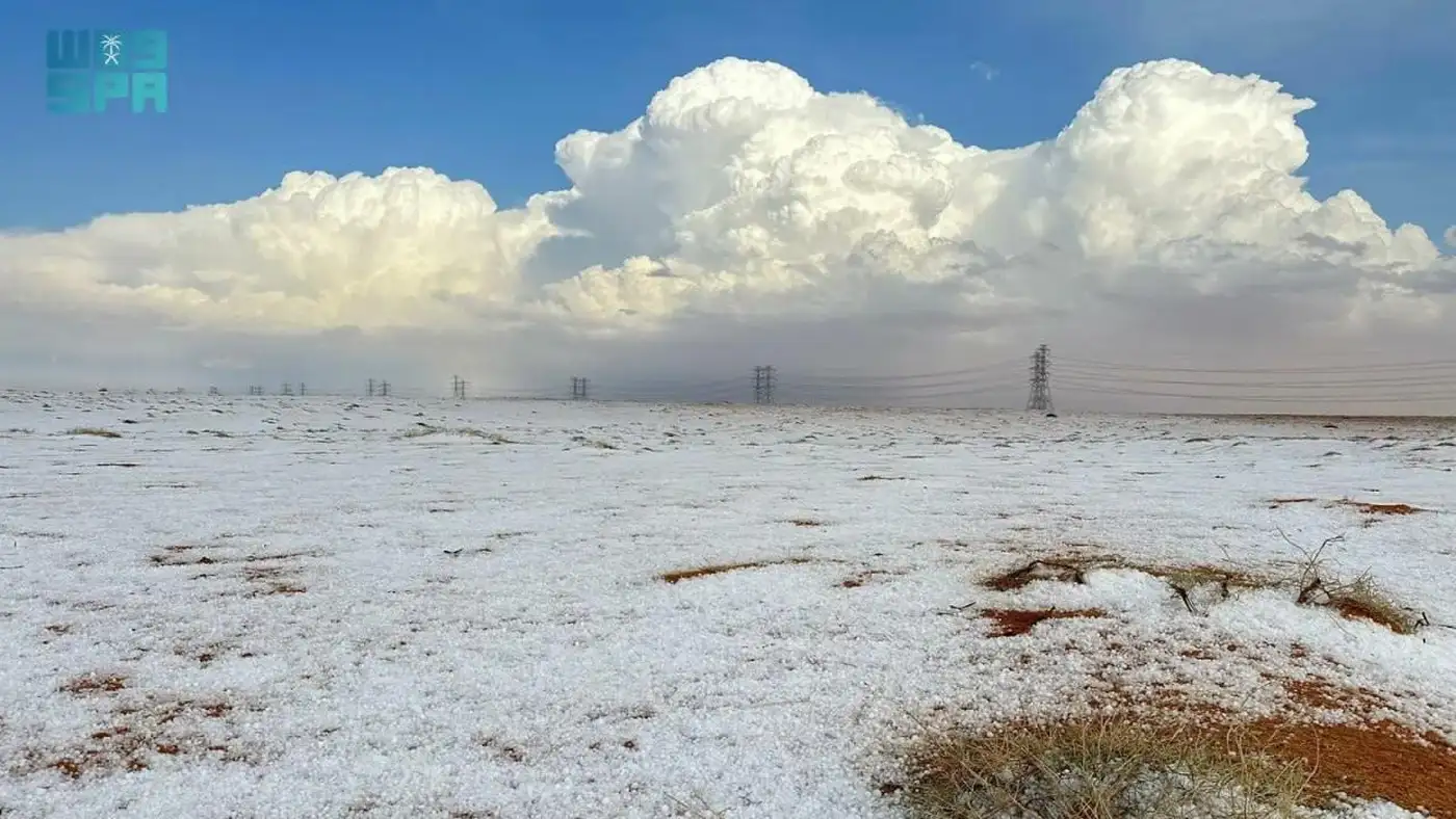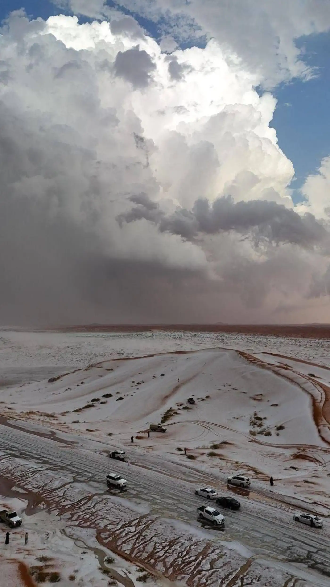 На днях в Саудовской Аравии произошло удивительное явление: пустыню засыпало градом, а в некоторых районах даже выпал снег. До этого в королевстве шли проливные дожди.