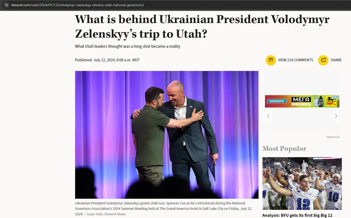 Более того, в прошлые визиты Зеленского в США он посещал подобное мероприятие в Юте, где губернатор — республиканец. И Трамп тогда не возмущался.