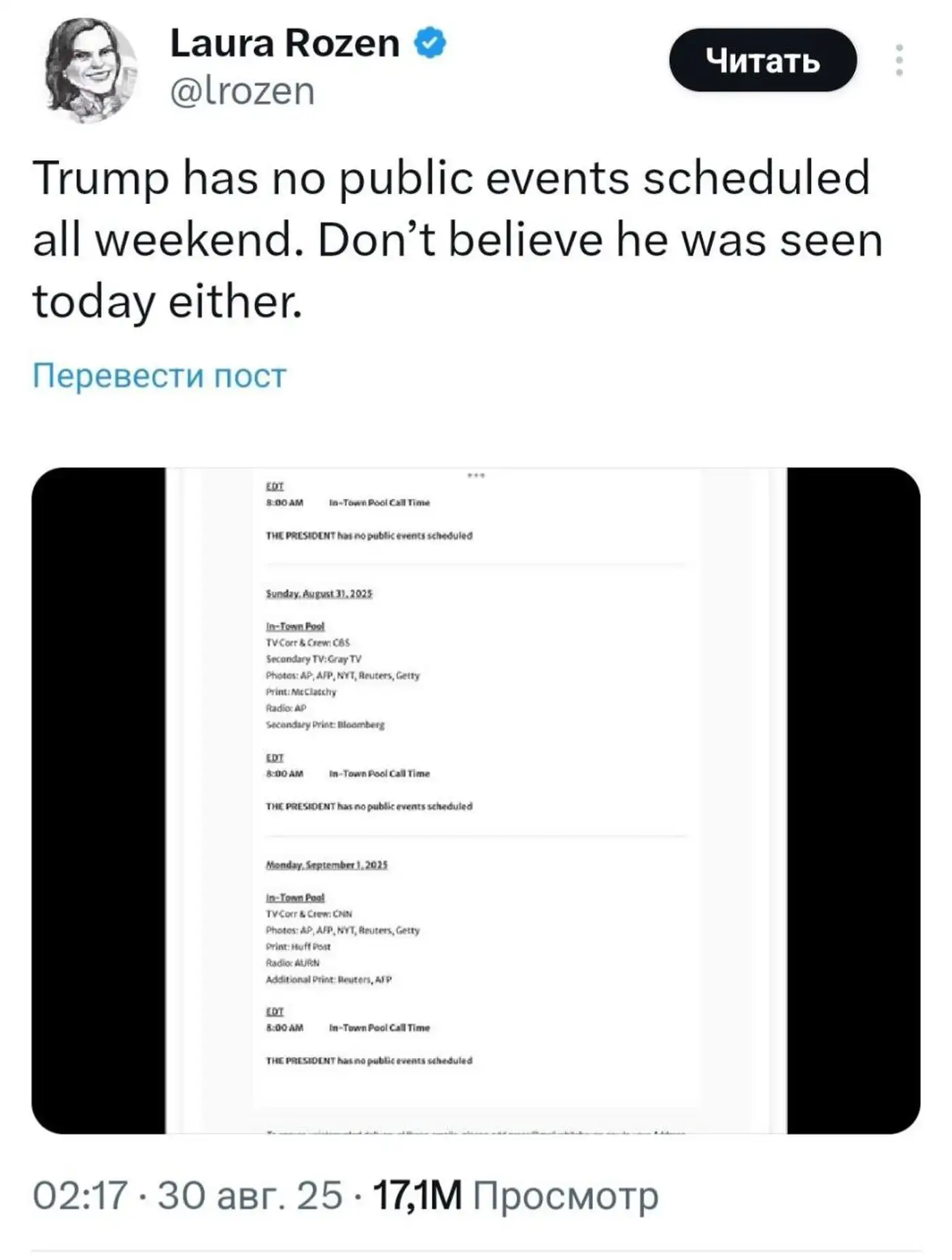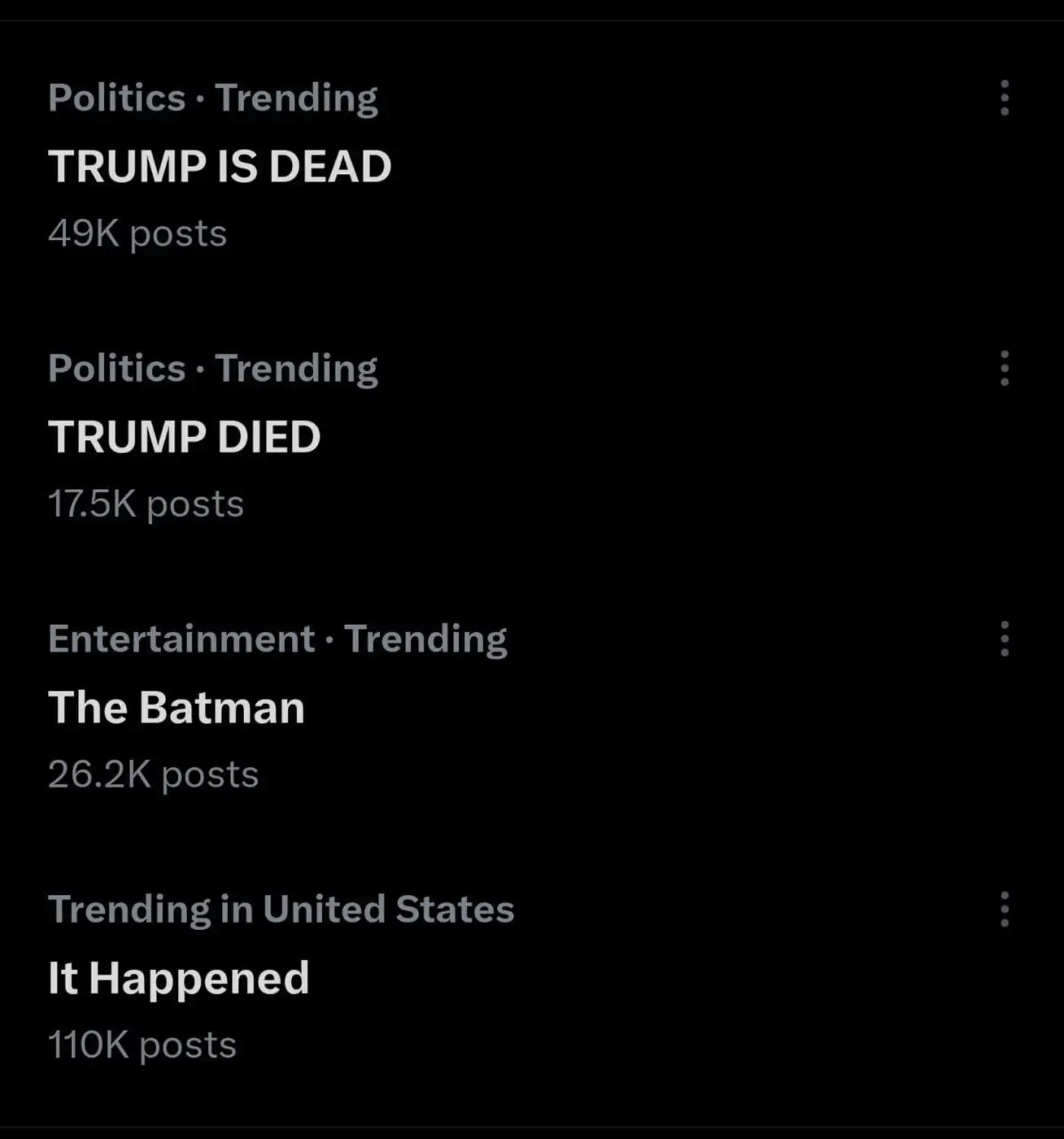 Хештеги вроде «Trump is Dead», «Trump Died» и «President Vance» влетели в тренды Твиттера, потому что экс-президент не появлялся на публике со вторника.