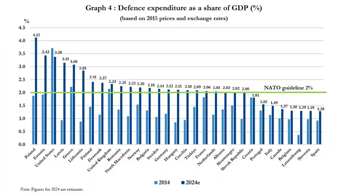 Список стран-членов НАТО, которые не достигли и 2% ВВП на расходы на свою оборону.
