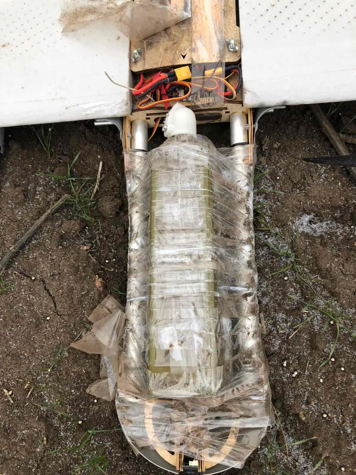 Вот именно так выглядит “с боку” российский дрон “Молния-2”, созданный из гуано и палок, максимально дешёвый, на который в качестве боевой части устанавливается противотанковая мина ТМ-62, что делает его куда более серьёзной угрозой чем ББ “Ланцет”.
