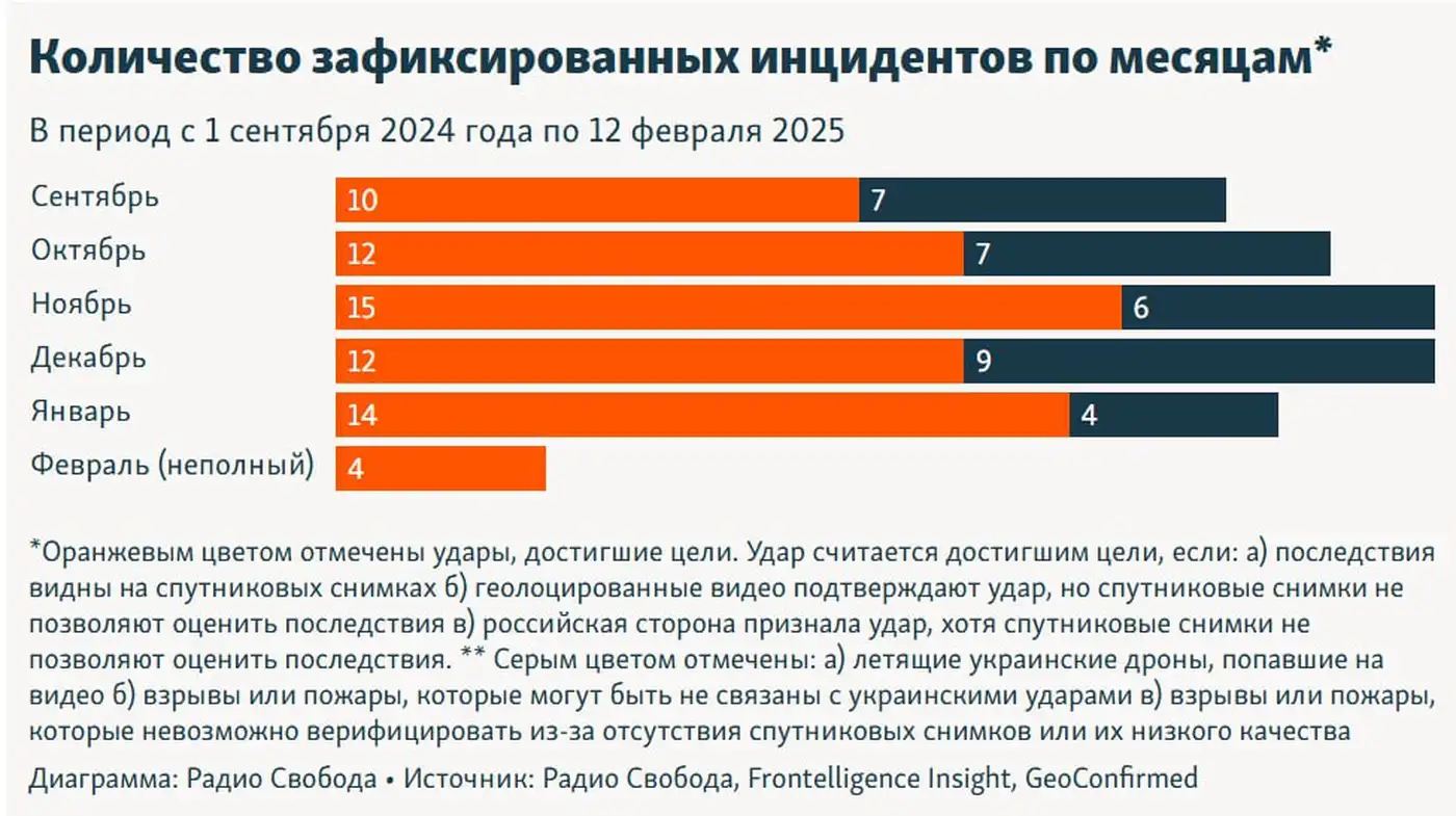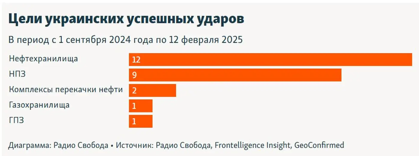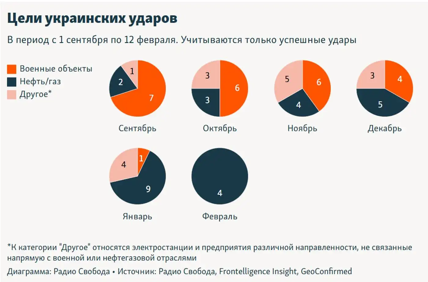 С сентября 2024 года по февраль 2025 года украинские силы активно наносили удары по российской энергетической инфраструктуре и военным объектам, что привело к значительным потерям и разрушениям. Согласно совместному исследованию Радио Свобода и проекта Frontelligence Insight, ущерб российской энергетике за этот период оценивается минимум в 60 миллиардов рублей (около 658 миллионов долларов), а по менее консервативным оценкам — почти в 80 миллиардов рублей.