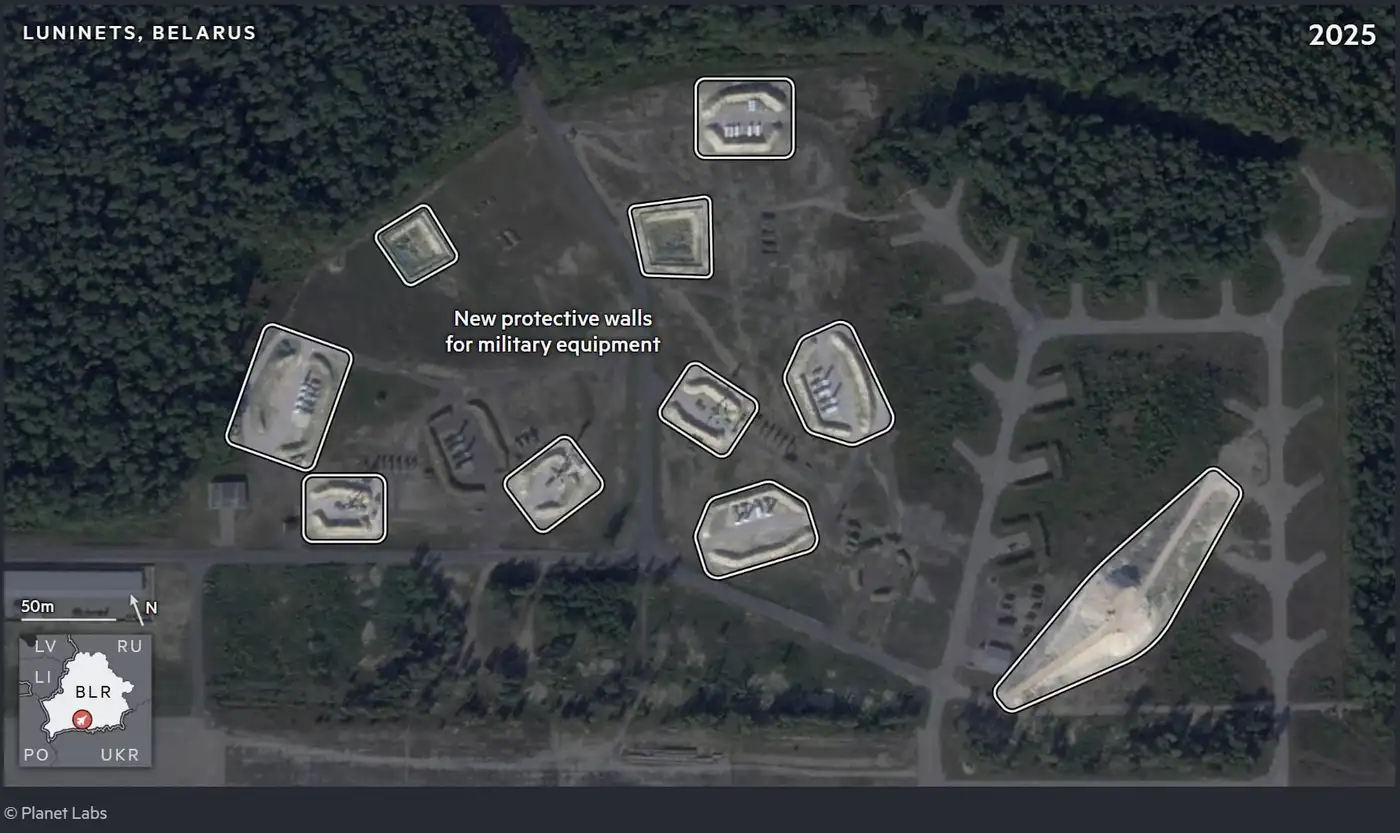 НАТОвская активность заметна не только в ЕС. На авиабазе Лунинец в Беларуси, расположенной в 200 км от Польши и Литвы, спутниковые снимки фиксируют строительство новых сооружений, ангары для авиации и дополнительное военное оборудование.