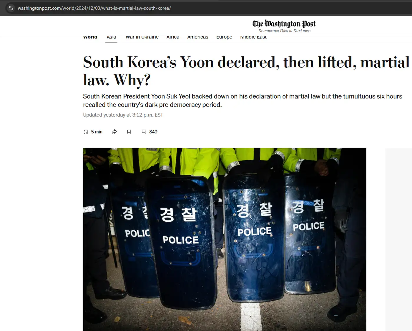 Президент Южной Кореи Юн Сок Ёль заявил, что отменит военное положение и отведёт войска. Фактически оно длилось шесть часов. На этом всё.