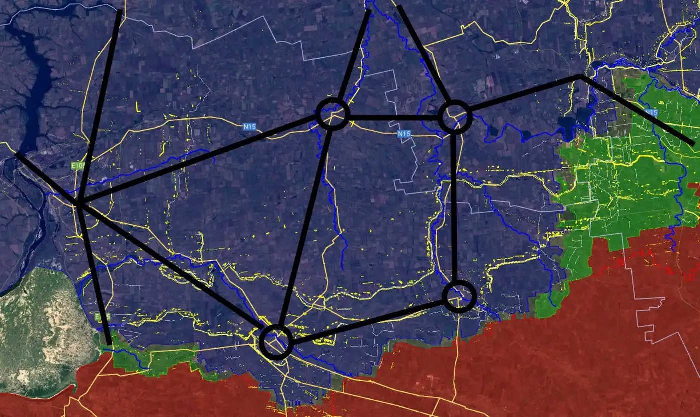 На южном фронте есть две линии обороны, расположенные в тылу от прифронтовых городов. Четыре главных узла находятся на двух трассах — восточной и западной: Покровское и Новониколаевка на автотрассе H15, а на юге — Гуляйполе и Орехов.